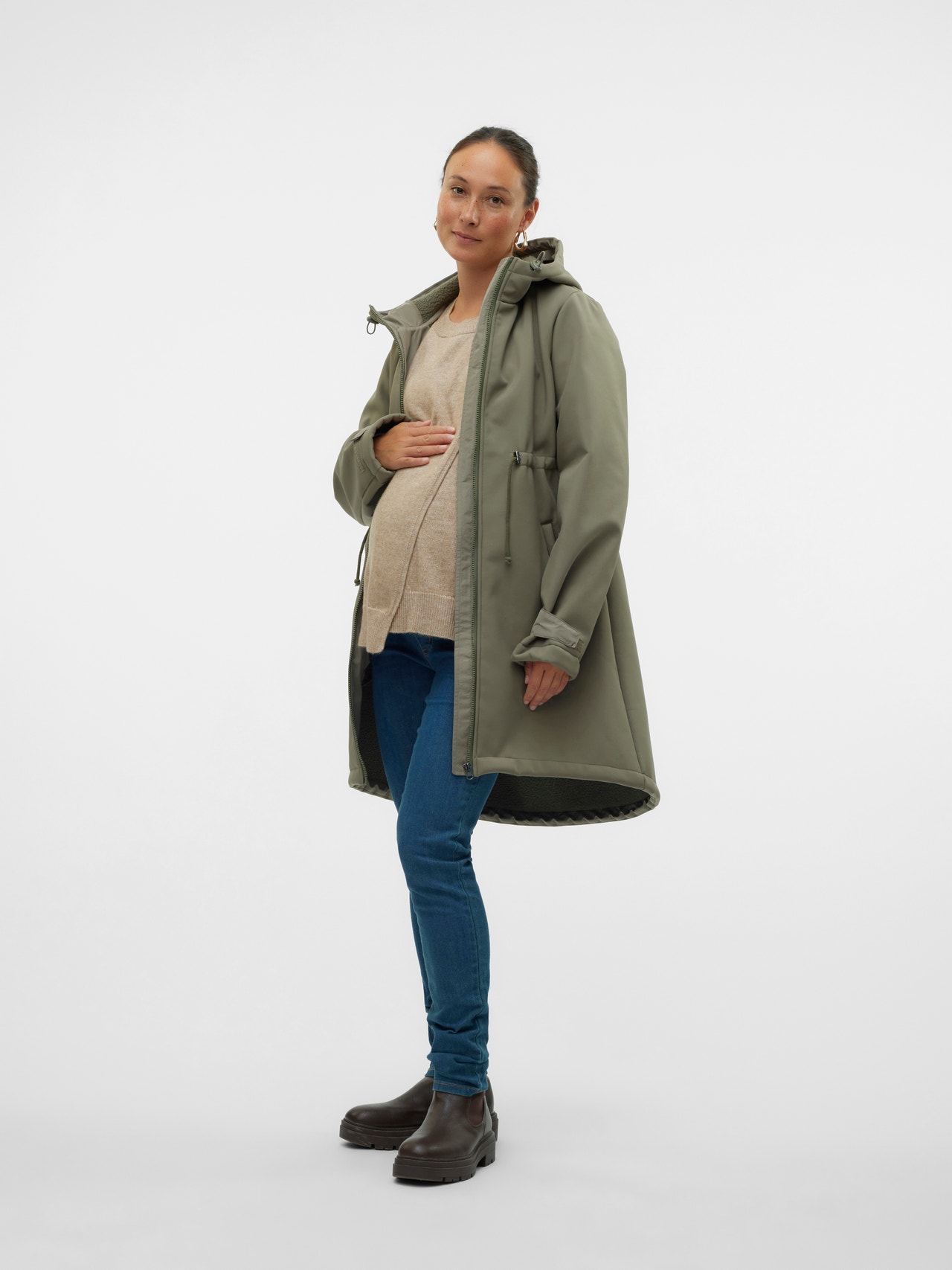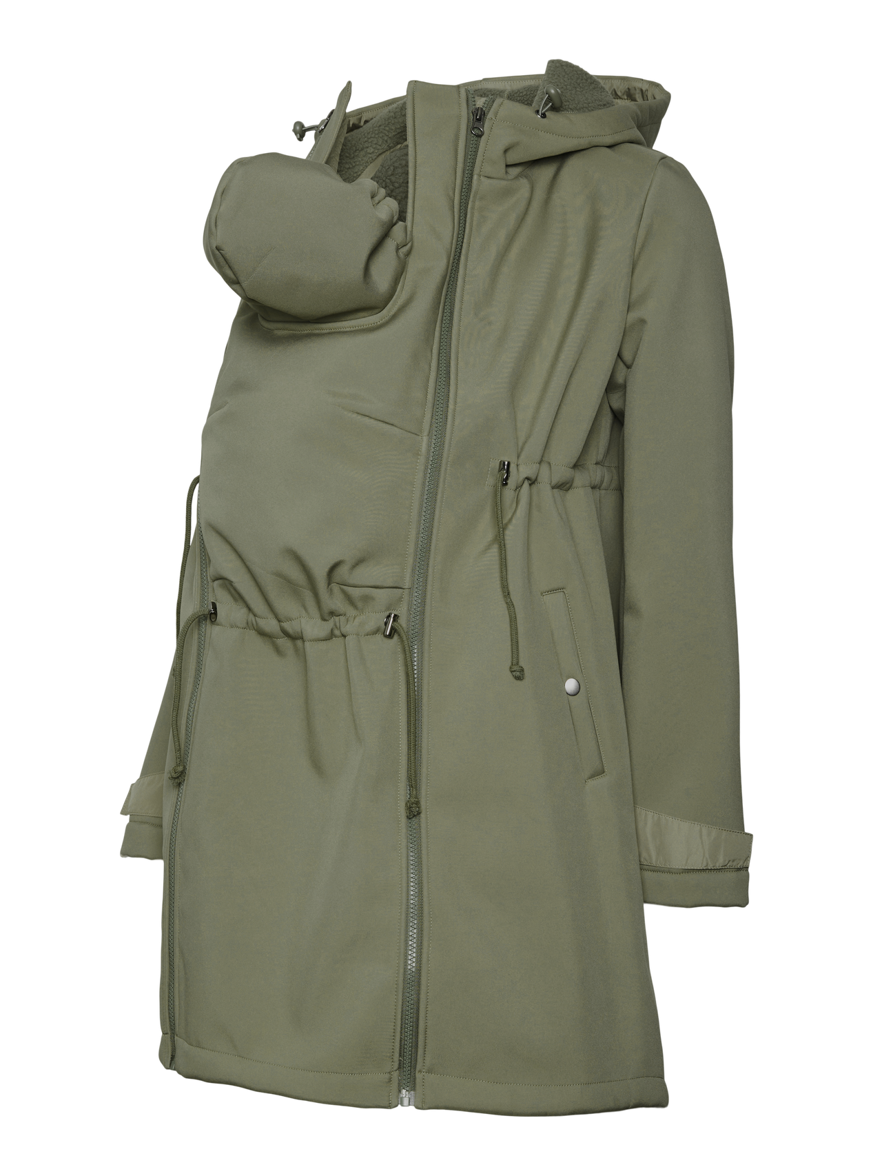 Bereid je kast voor op een nieuw seizoen met een functionele en modieuze 3-in-1 jas voor zwangerschap, post-partum voor het dragen van je kind en als gewone jas. Gebruik hem tijdens de zwangerschap door het paneel toe te voegen of de pasvorm aan te passen; gebruik hem na de bevalling met de praktische draagfunctie voor je baby; bevestig het draagpaneel aan de voorkant zodat er ruimte is voor een draagdoek, draagzak of omslagdoek, of draag hem als gewone jas en creëer een knusse, cleane look.