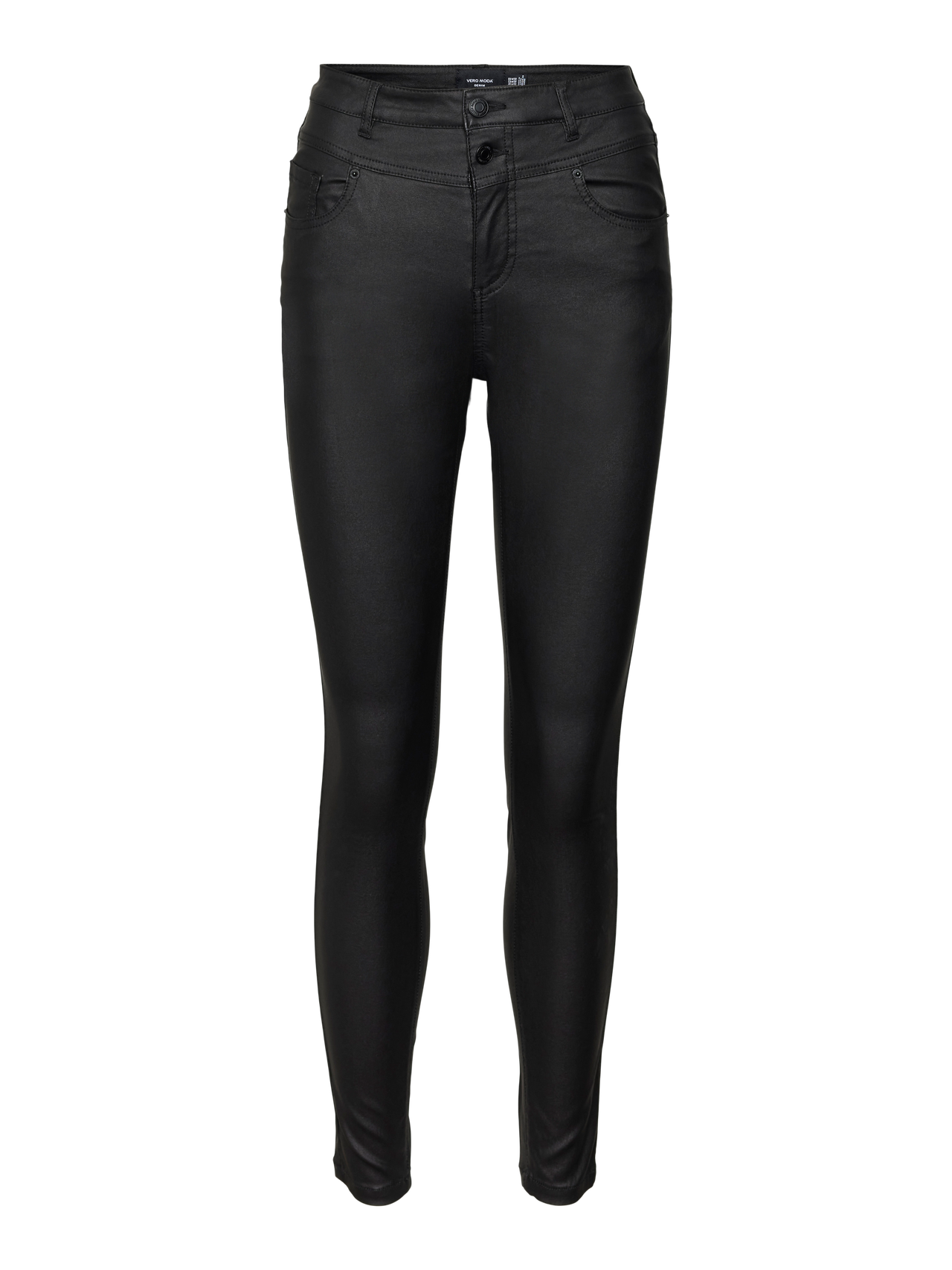 - Coated, skinny jeans.
