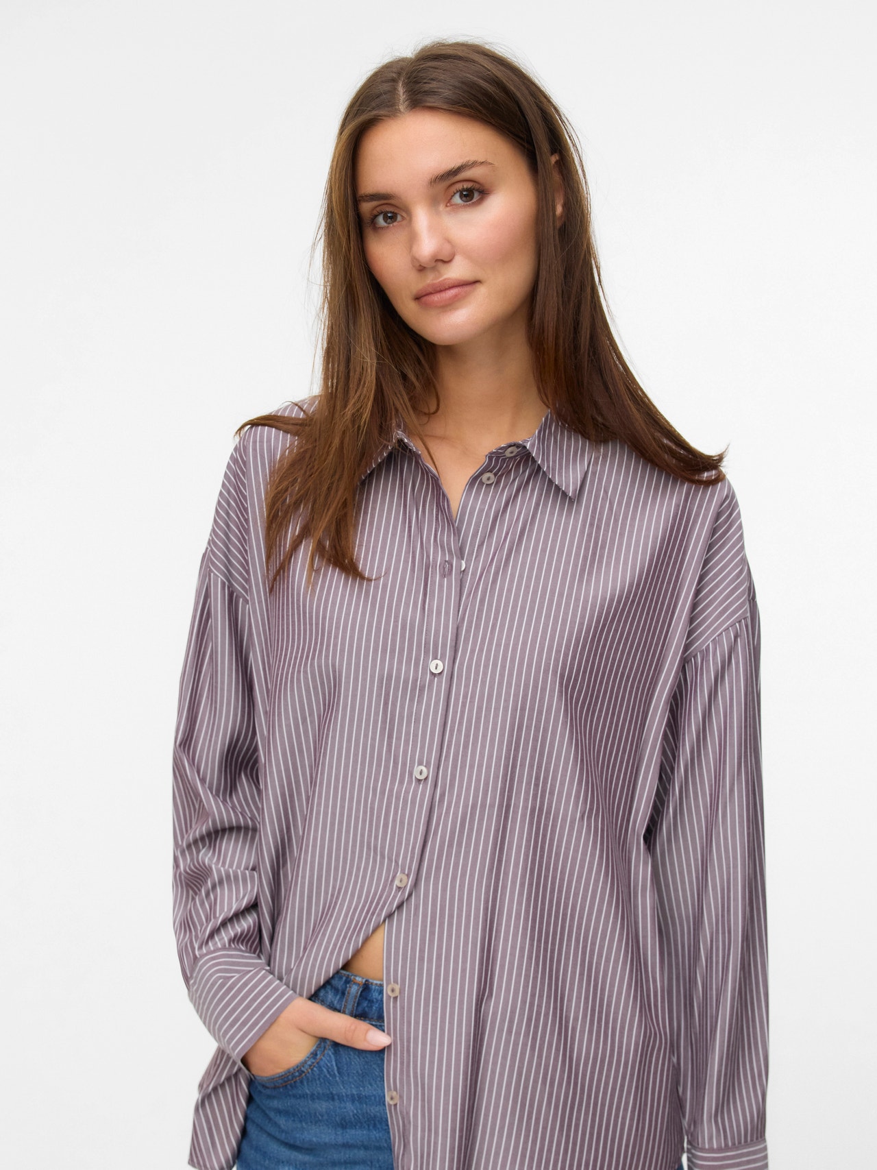 Koszula oversize to idealny ciuch na dni, kiedy zależy ci na wygodzie i modnym wyglądzie. Noś ją do jeansów na co dzień lub w ciekawszych stylizacjach do mini spódnicy i butów na obcasie.