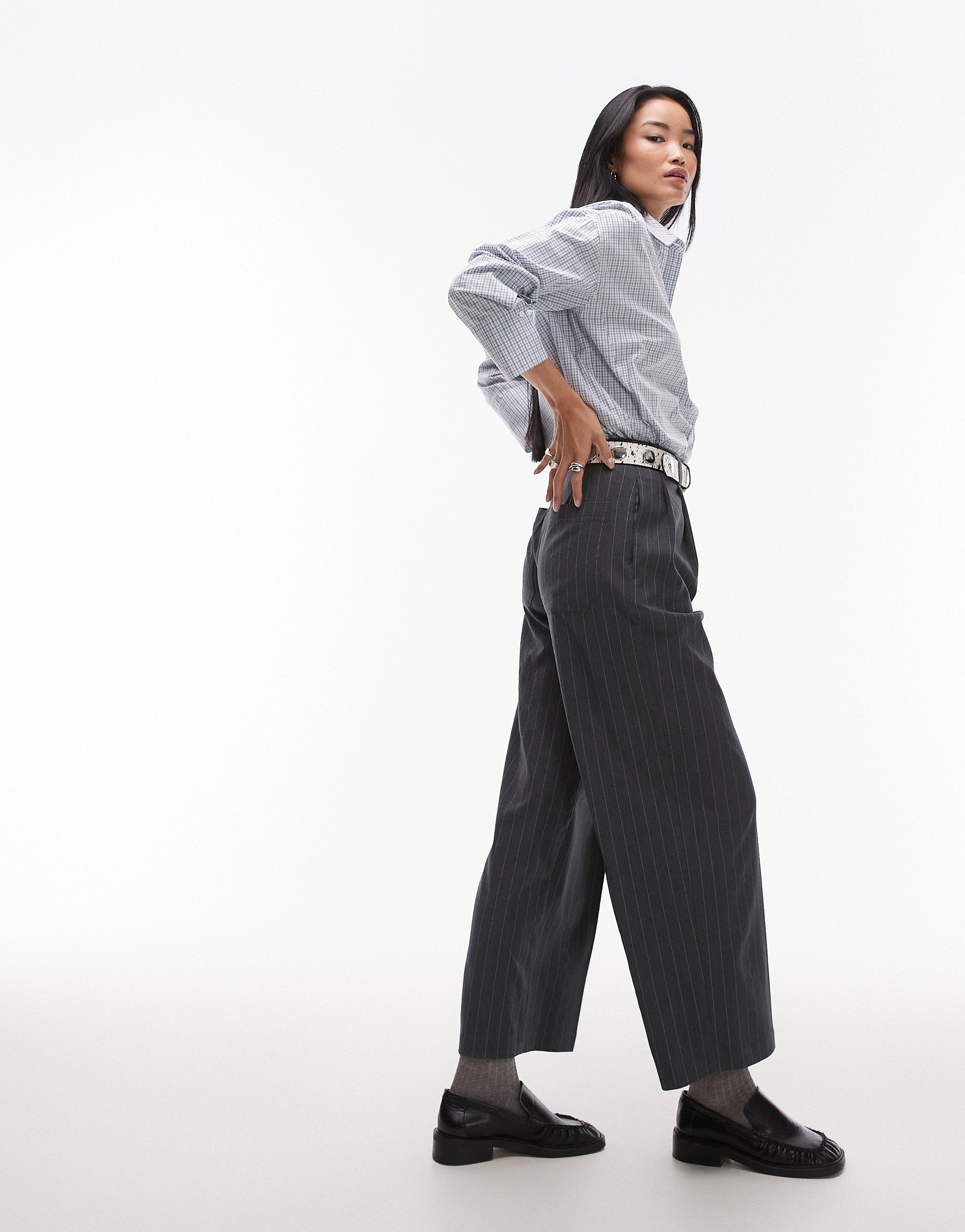 Topshop wide straight leg pinstripe tailored trouser co-ord in grey - GREY