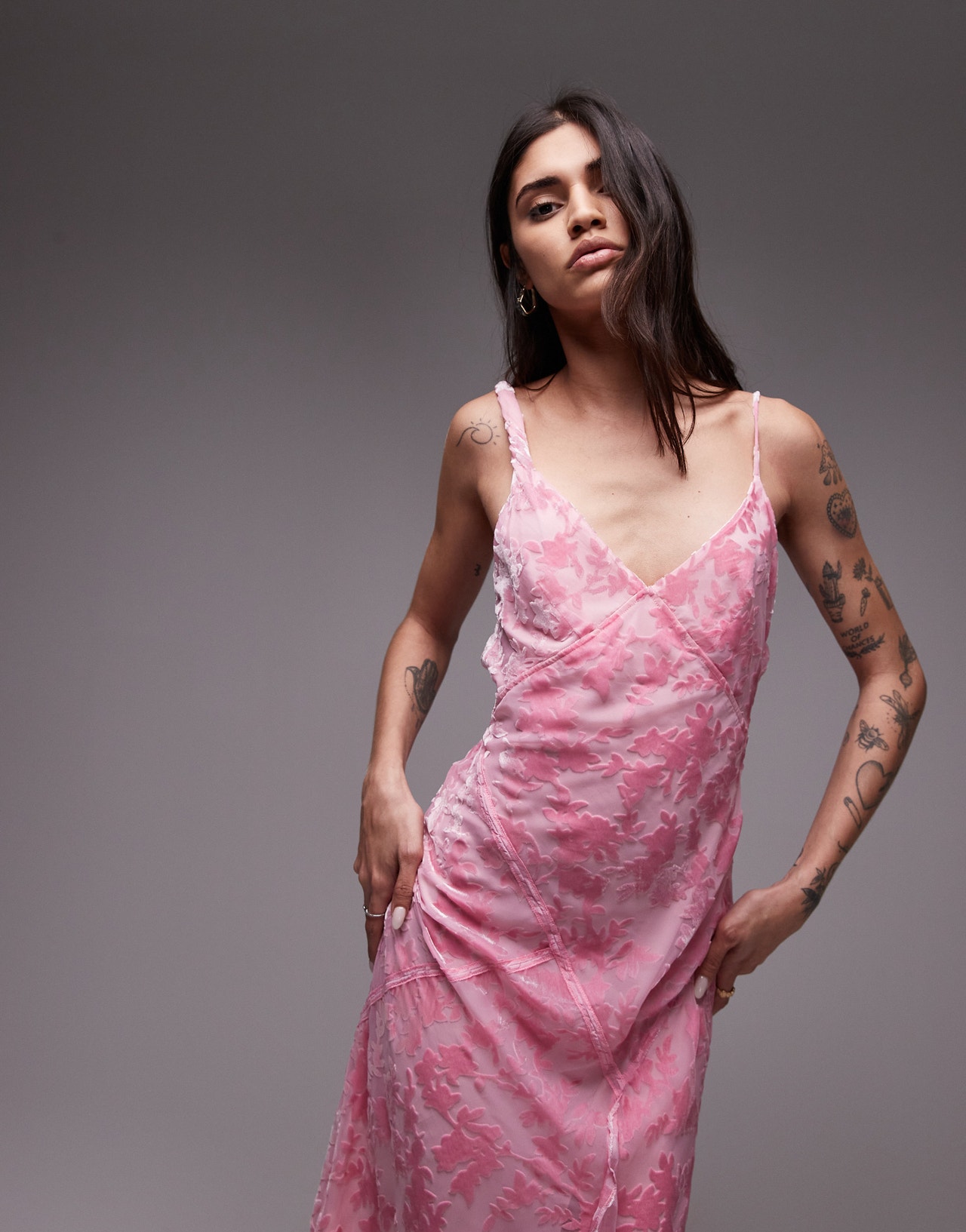 Topshop burn out twist shoulder maxi dress in pink - LPINK