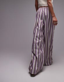 Topshop poplin stripe straight leg trouser in purple - PURPLE