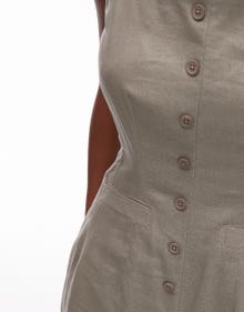 Topshop linen button down playsuit in khaki - KHAKI