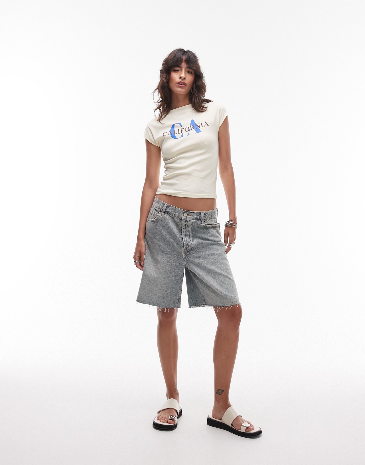 Topshop graphic California puff print cap sleeve baby tee in buttermilk - YELLOW
