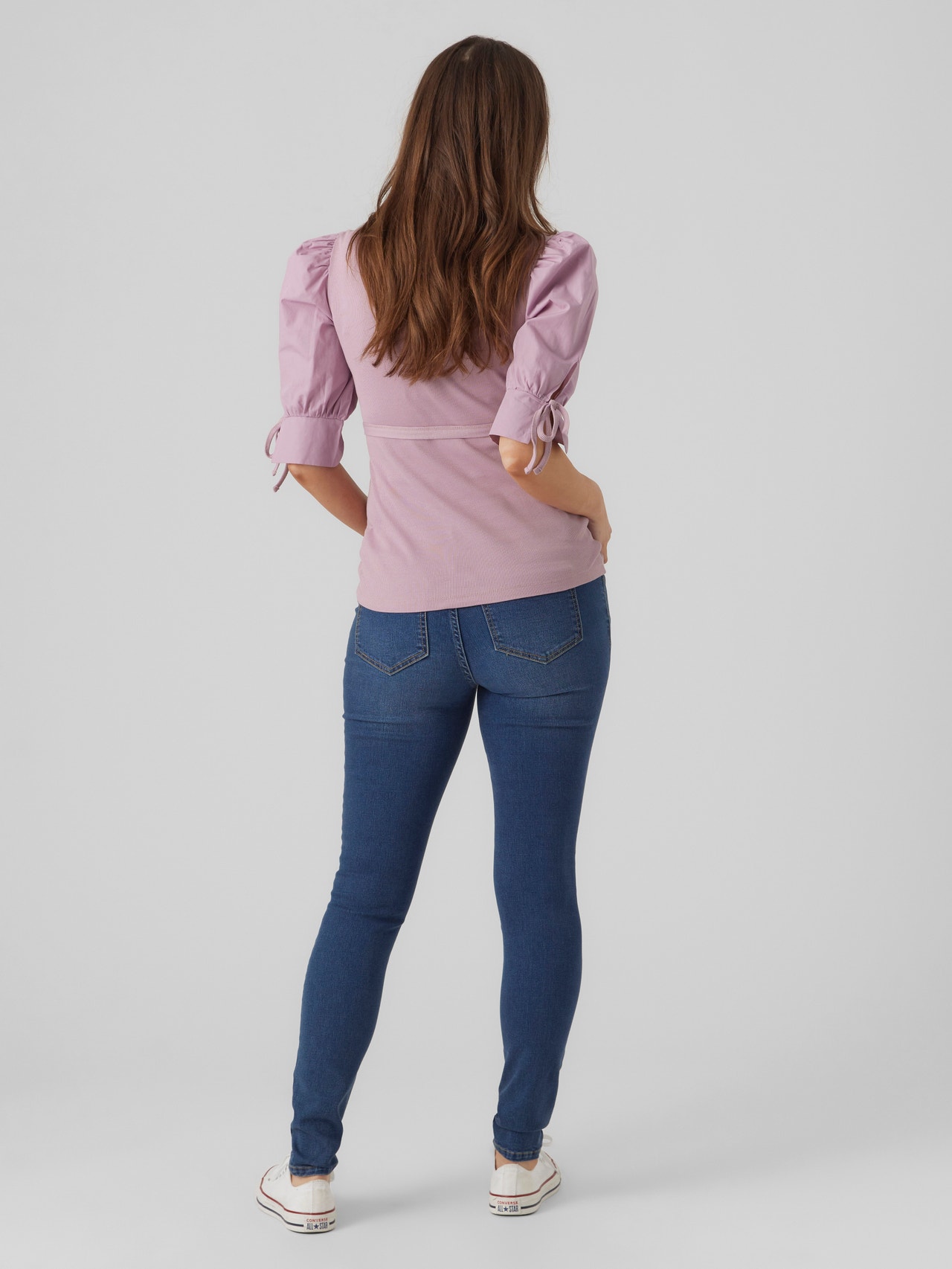 - Mid-wash maternity slim-fit jeans