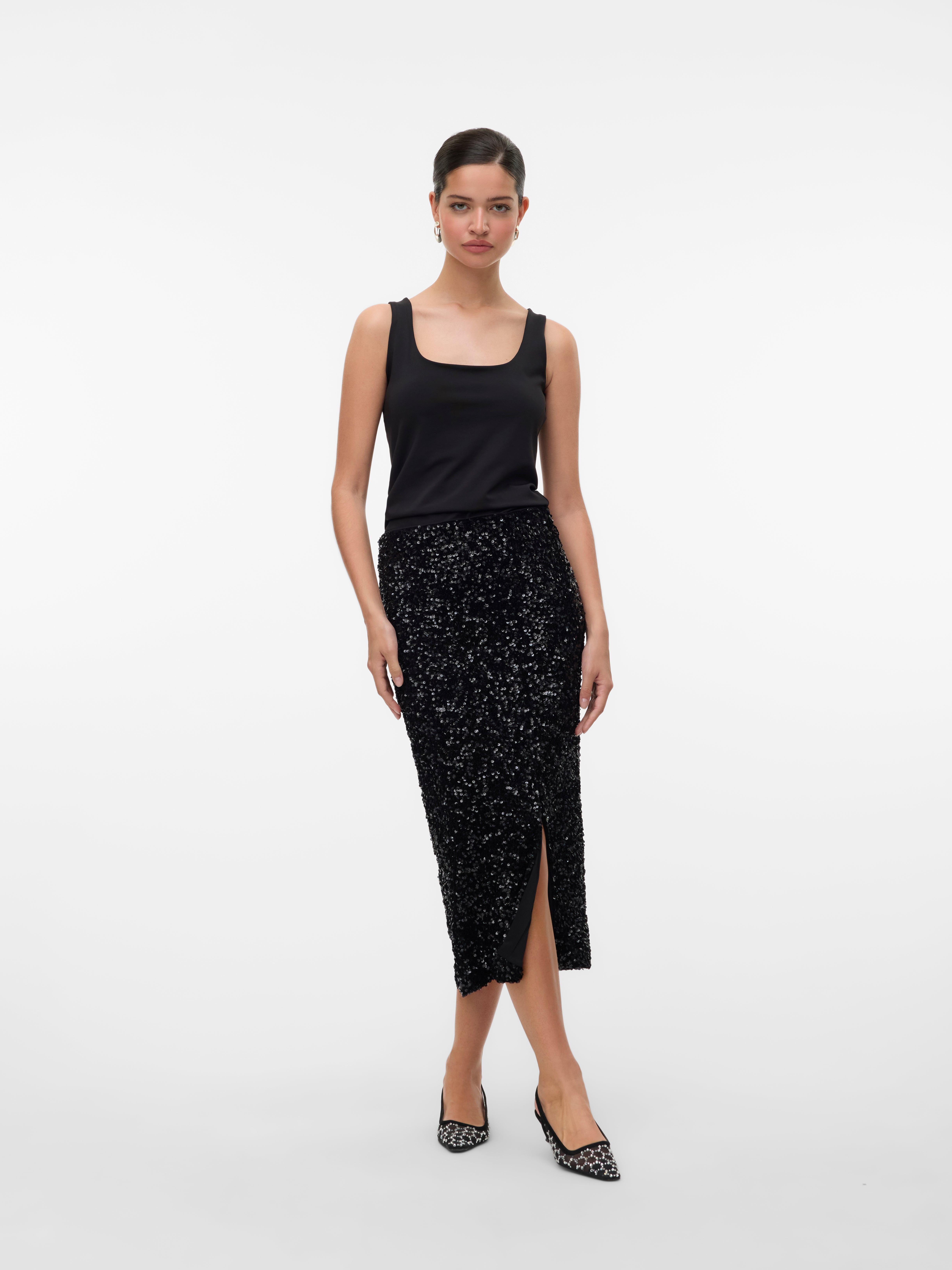 Vai sair? Bem, temos a ideia de outfit perfeita. Conjuge a sua saia de festa com um top bonito, saltos, e algumas jóias - e voilà!.