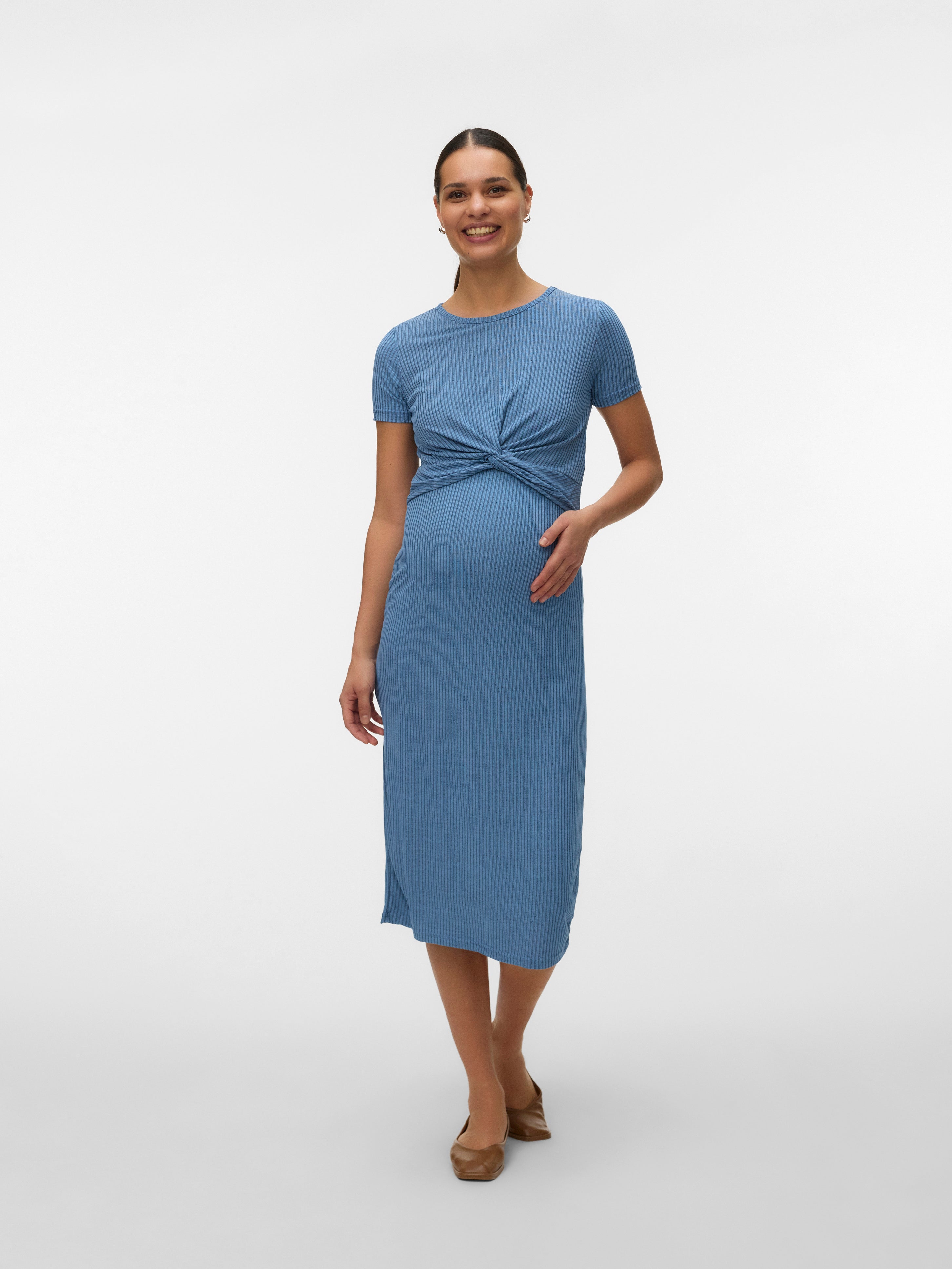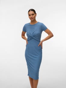 Përshtatja e rregullt O-Neck Fustan midi