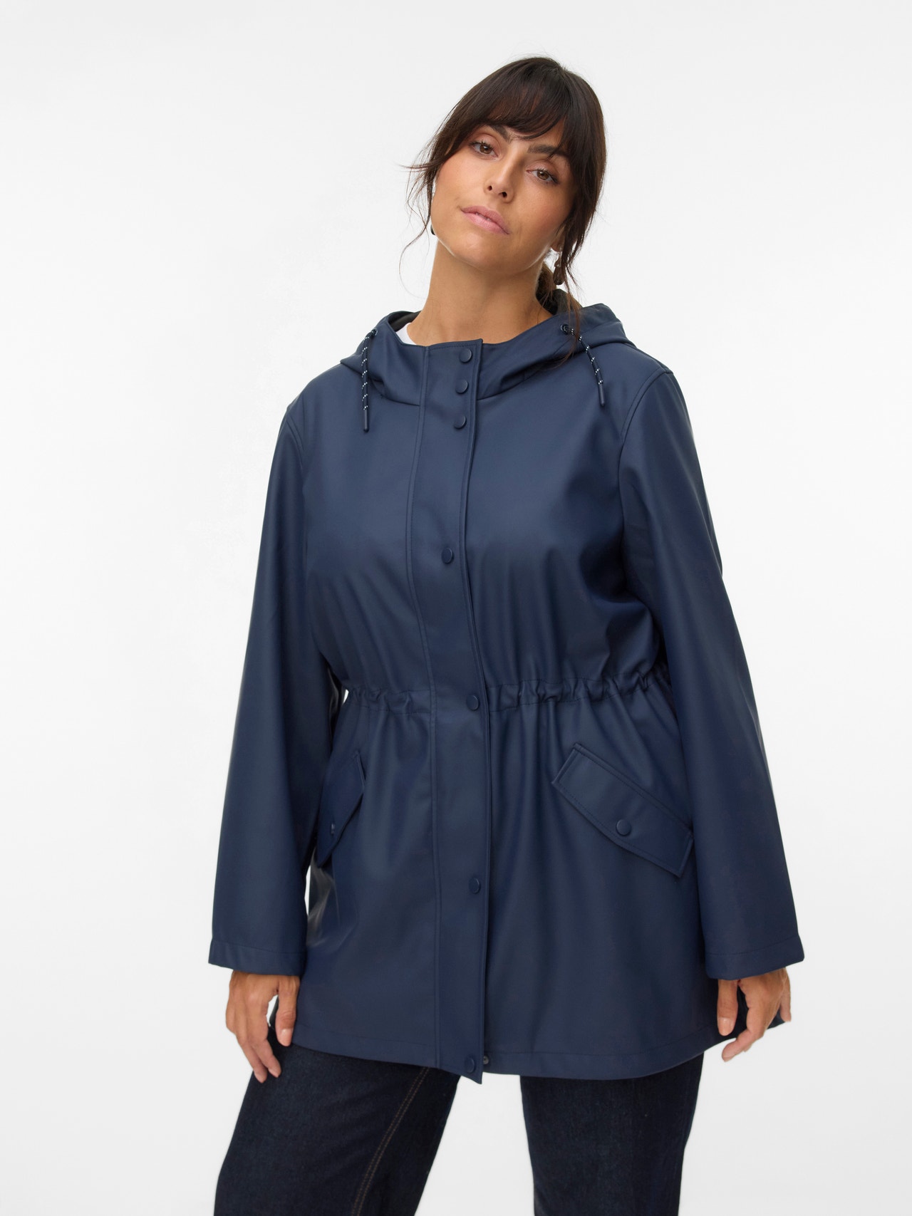 En kombination av snyggt och praktiskt skapar en perfekt regnkappa. En regnkappa har många syften, men det viktigaste är att hålla dig torr och varm. Därför är denna kappa designad för att hålla dig torr utan att kompromissa med stil eller funktion. Lägg till en söt hinkhatt och ett par stövlar för den perfekta looken en regnig dag..
