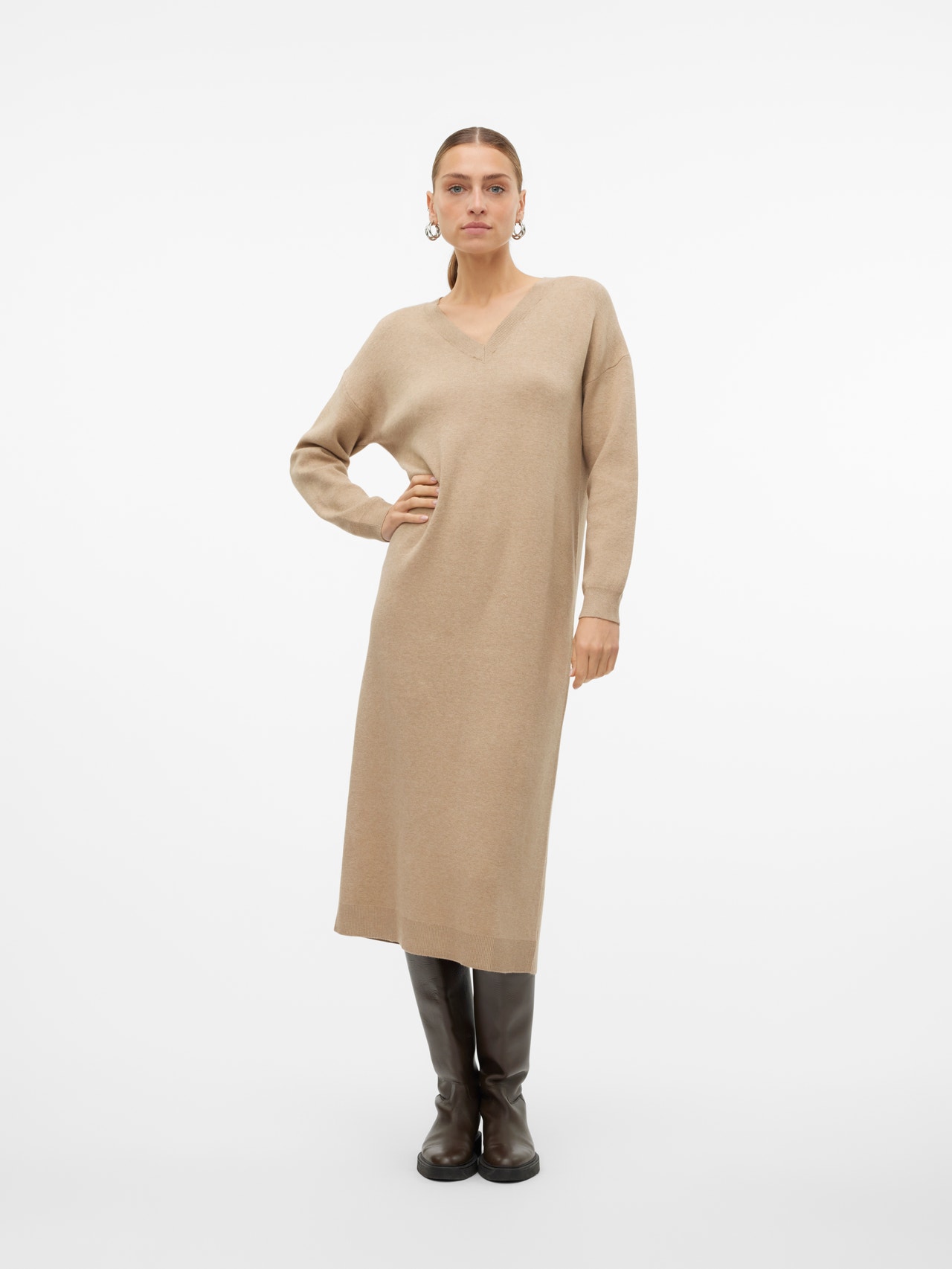 Bekvämligheten har inga gränser i en stickad klänning. Med detta plagg får du ett klassiskt garderobs-måste för de kallare dagarna. Styla den med ett par strumpbyxor och höga, kraftiga stövlar för en modern vardagslook. Lägg bara till några coola accessoarer, så förvandlar du det enkelt till en festlook.