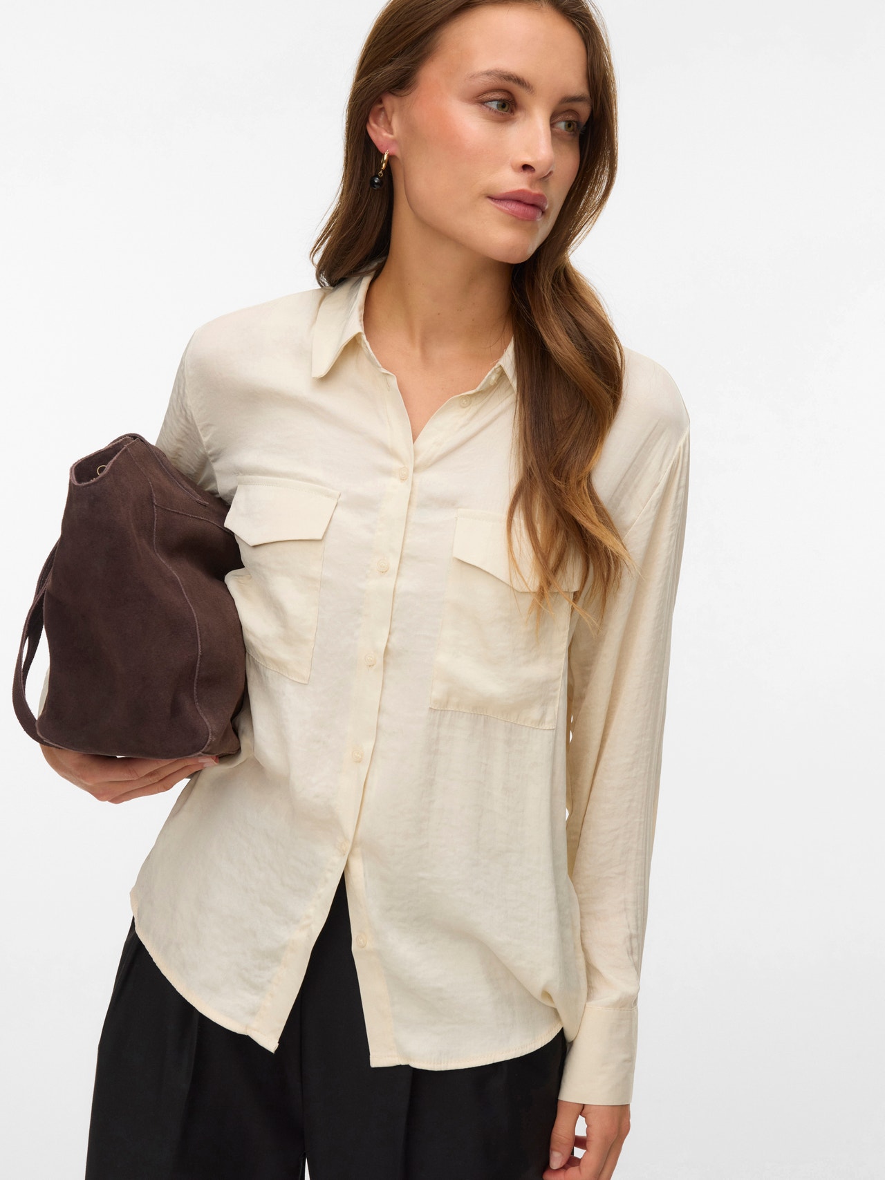 Den här skjortan är ett elegant och mångsidigt tillskott till din garderob eftersom den kan bäras på egen hand eller öppen med en enkel topp under. Kombinera den med klassiska jeans och en enkel t-shirt för en cool vardagslook eller klä upp den genom att lägga till ett par byxor och klackar.