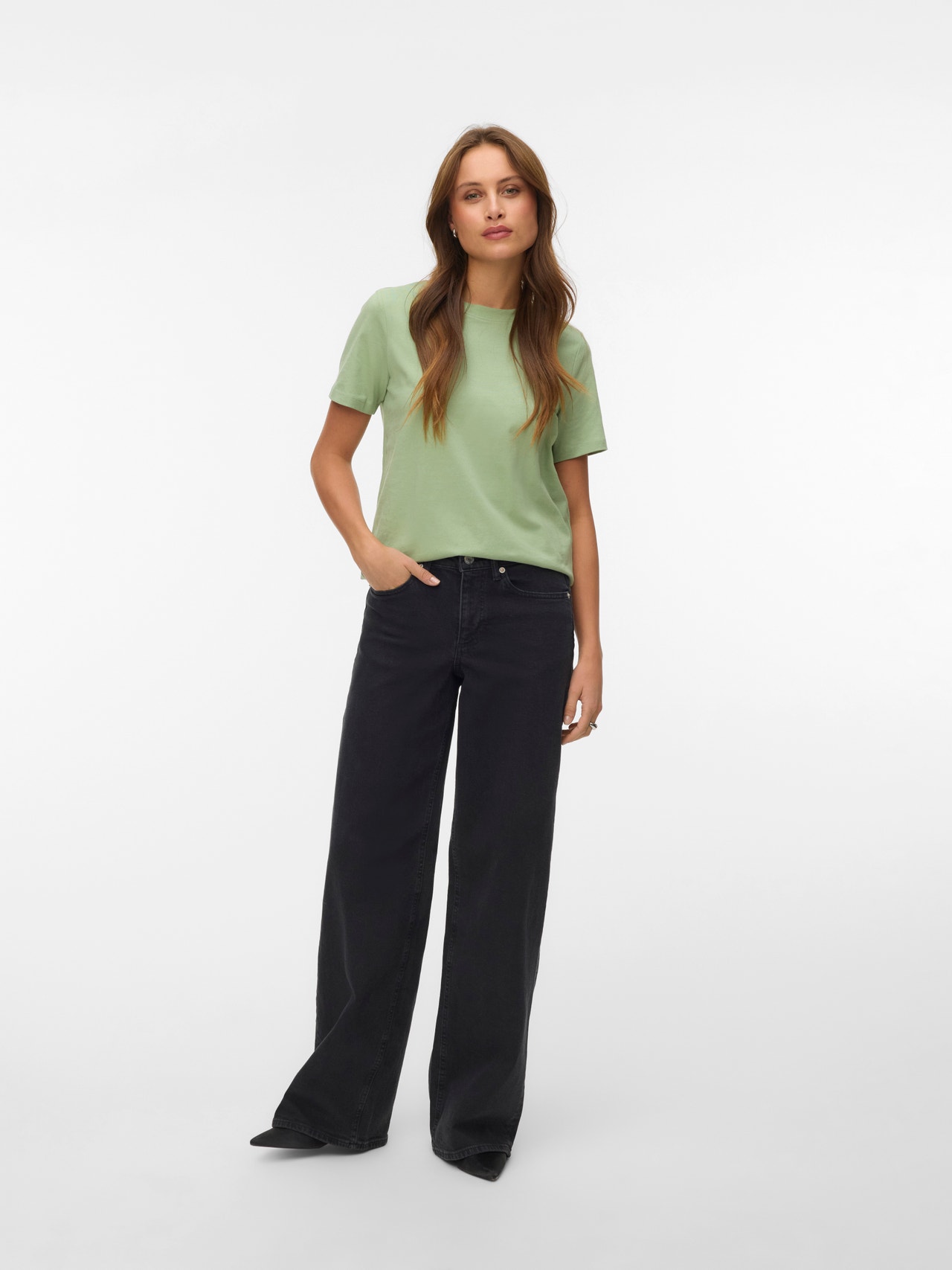 VMSANDIE-STRETCH Medelhög midja Vida ben Jeans
