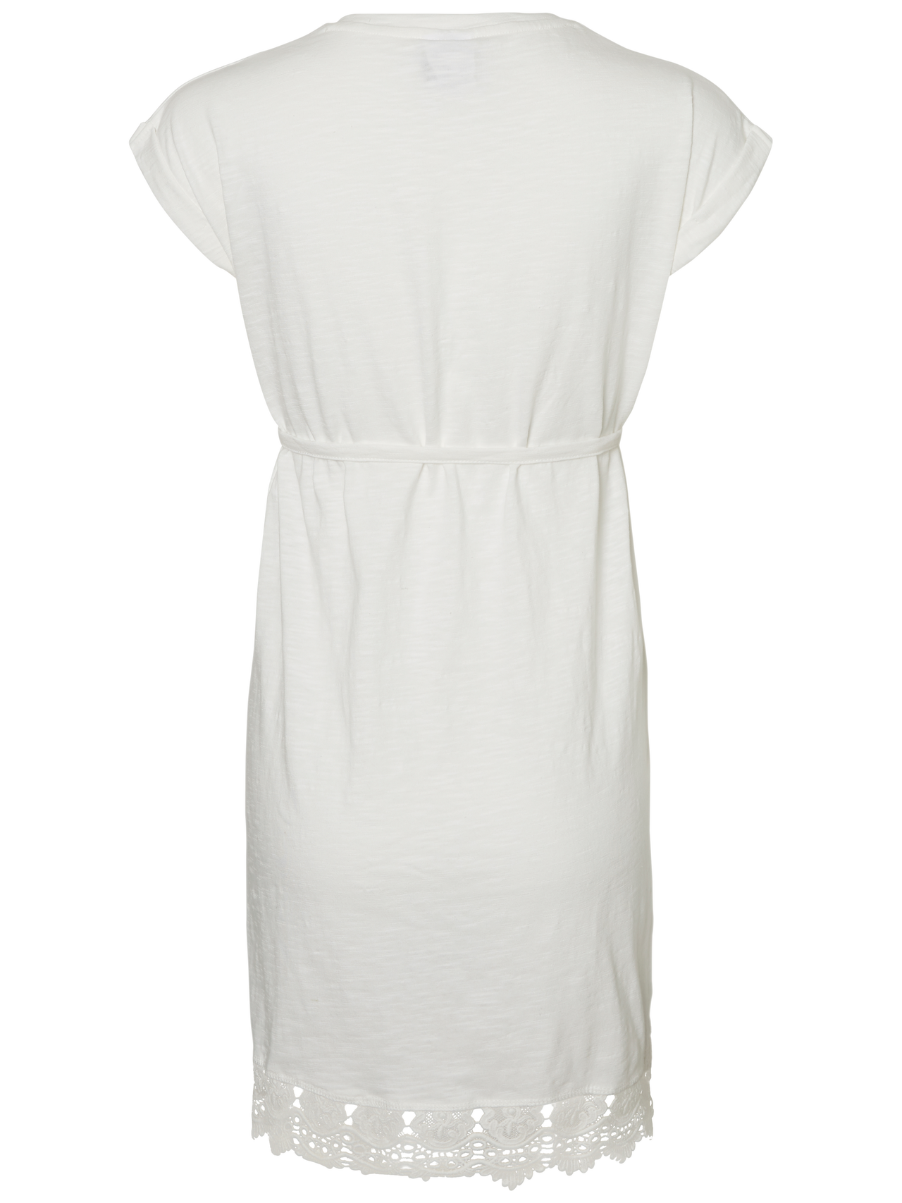 LADIES MATERNITY JERSEY TUNIC, NECK TAPE IN MAIN QUA, TURN UP AT CUFF, WITH BELT IN MAIN FABRIC, COTTON LACE AT HEM, FLAT LOCK AT HEM.