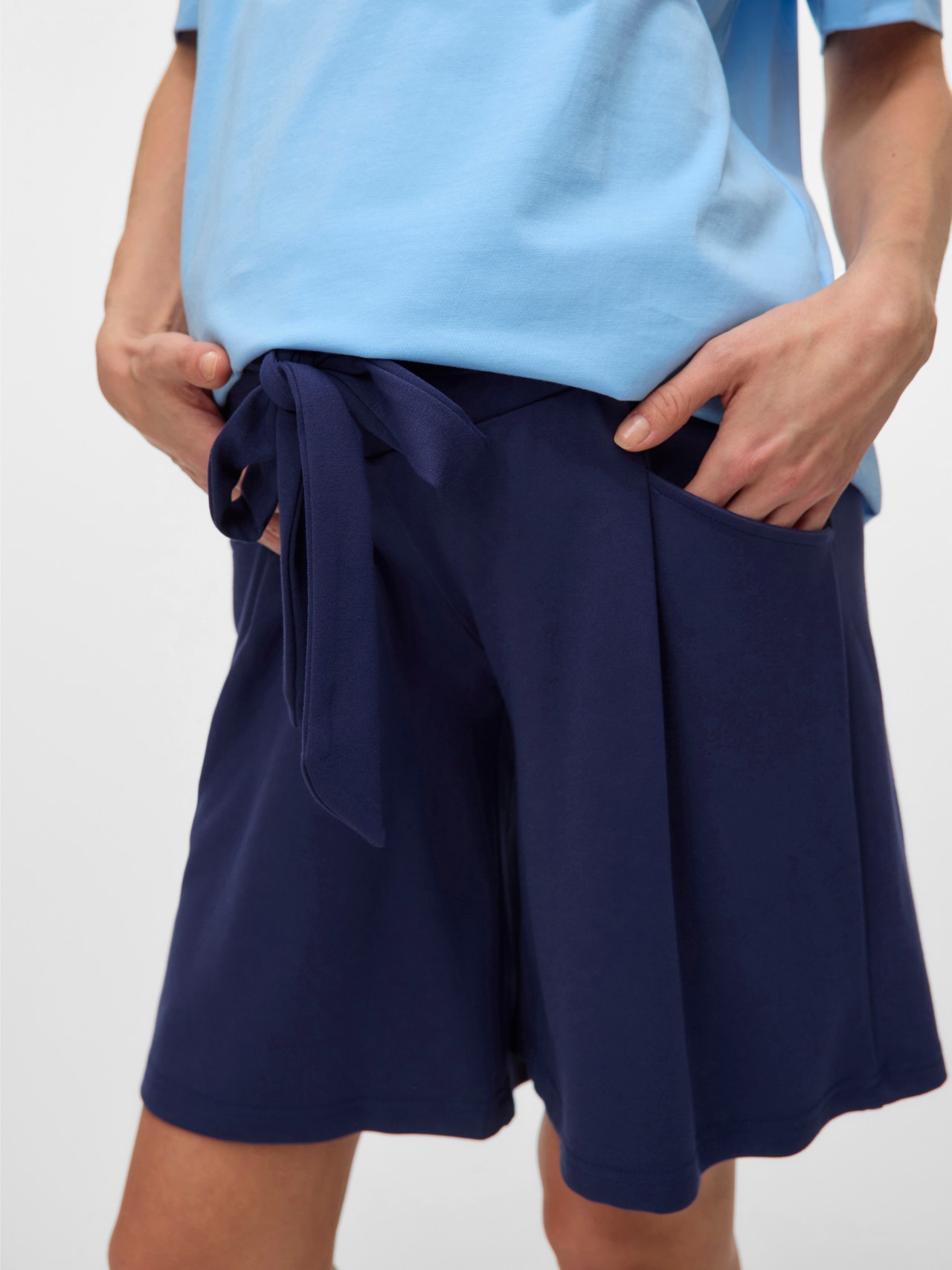 Skapa den perfekta sommarlooken med ett måste i garderoben - mjuka och luftiga shorts designade för att passa genom graviditetens alla stadier, vilket säkerställer en tidlös look oavsett tillfälle..